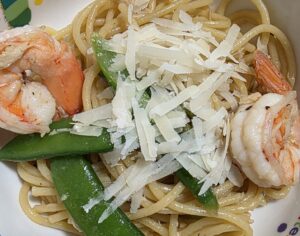 Monday dinner was one of those simple meals that always works for us. Japanese shrimp pasta is one of the kids’ favorite comfort foods, and it is quick and easy to make, which makes it especially helpful on a school night.