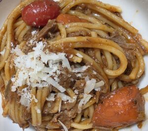Wednesday dinner was a good leftover win. We used the leftover stew and turned it into braised beef spaghetti, which gave the meal a second life and made dinner much easier than starting from scratch.